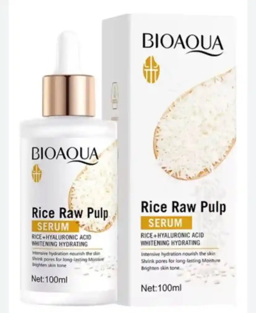 Rice Raw Pulp Essence, un sérum facial con los siguientes beneficios: Hidratación profunda: Contiene ácido hialurónico que hidrata y mantiene la piel elástica. Ilumina y unifica el tono: El extracto de arroz, rico en antioxidantes, ayuda a reducir manchas oscuras y mejorar la luminosidad. Mejora la textura y suavidad: Ayuda a calmar y suavizar la piel, dejándola tersa al tacto. Propiedades antienvejecimiento: Los antioxidantes del arroz combaten los signos del envejecimiento, reduciendo la apariencia de líneas finas y arrugas. Adecuado para todo tipo de piel: Su fórmula ligera y de rápida absorción lo hace apto para diferentes tipos de piel.