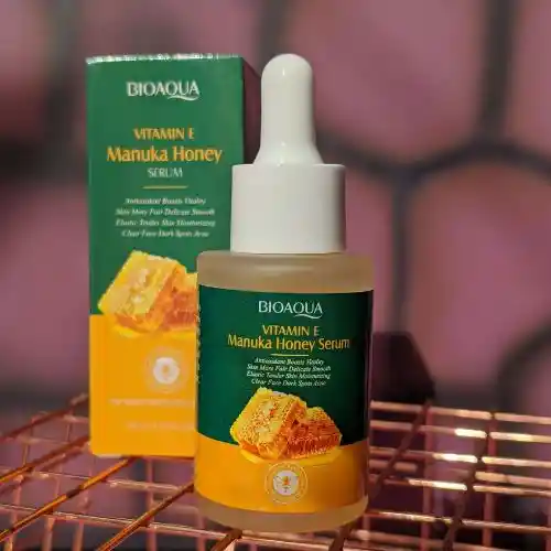 Sérum de Miel de Manuka y Vitamina E de BioAqua 💙 30ml La miel de Manuka, es una miel monofloral producida a partir del néctar del árbol de Manuka que es nativo de Nueva Zelanda, este es un poderoso antioxidante que ayuda a nutrir la piel, la hidrata y favorece su cicatrización. Además, la miel de Manuka combate la inflamación, previene el acné y reduce las arrugas. •Contiene glicerina, vitamina E y miel de Manuka. •La vitamina E hidrata y mejora la textura y el color de la piel. •Mejora las líneas finas de la piel. •Ayuda a disminuir su opacidad.