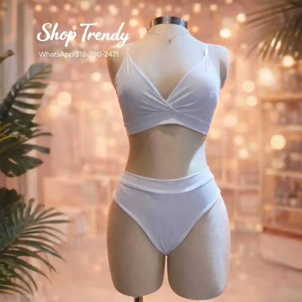 Set básico en licra y algodón – Talla M Set de lencería básica diseñado para brindar comodidad y ajuste perfecto en el día a día. Elaborado en licra con algodón, suave al tacto y fresco para uso prolongado. El top es sin varillas, ofreciendo un soporte natural y mayor confort, ideal para quienes prefieren libertad de movimiento sin sacrificar estilo. El pant tiene un ajuste cómodo que se adapta muy bien al cuerpo. Talla: S ✔️ Recomendado para chicas talla Bra 34 – 36 ✔️ Panty ideal para talla M Características: • Set básico de dos piezas • Tela: licra con algodón • Sin varillas • Súper cómodo • Color Blanco elegante y favorecedor • Ideal para uso diario Un básico infaltable, cómodo, versátil y con un color hermoso que realza la silueta ✨