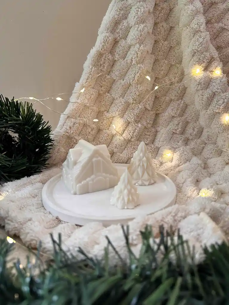 Set Blanca Navidad – ONEcandles Celebra la magia de la temporada con nuestro Set Blanca Navidad, una colección delicada y encantadora que transforma cualquier espacio en un rincón festivo. Incluye: ✨ Casita/Villa aromatizada (6 cm de altura) ✨ Árbol navideño aromatizado (7 cm de altura) ✨ Arbolito mini aromatizado (4 cm de altura) ✨ Plato base blanco (16 cm de diámetro) Cada pieza viene con un aroma diferente, en una combinación especialmente seleccionada para esta Navidad, creando un ambiente festivo, cálido y encantador.. Empaque listo para regalo. Perfecto para sorprender y decorar con el estilo ONE.
