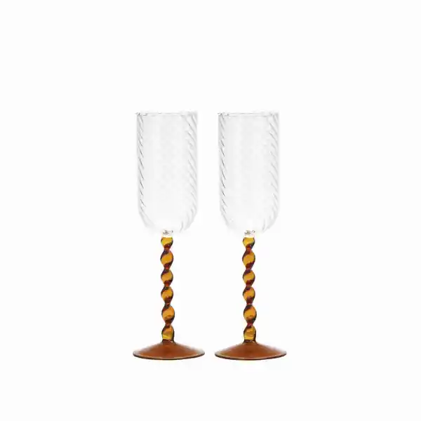 Set Contiene 2 Unidades. Copas en Vidrio de 220 mL de la Colección Pamir Color Transparente Con Pata Ámbar Con Diseño Vintage Especial Para Licores o Champaña.