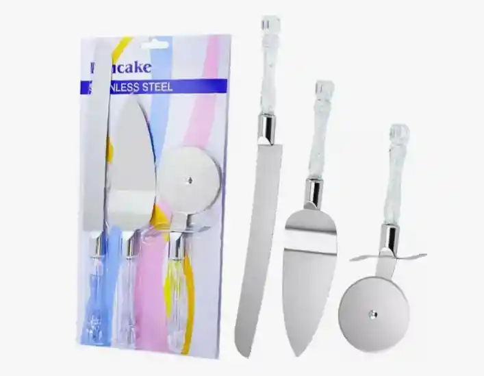 Set Cuchillo Para Torta Espátula Y Rodillo Pizzero