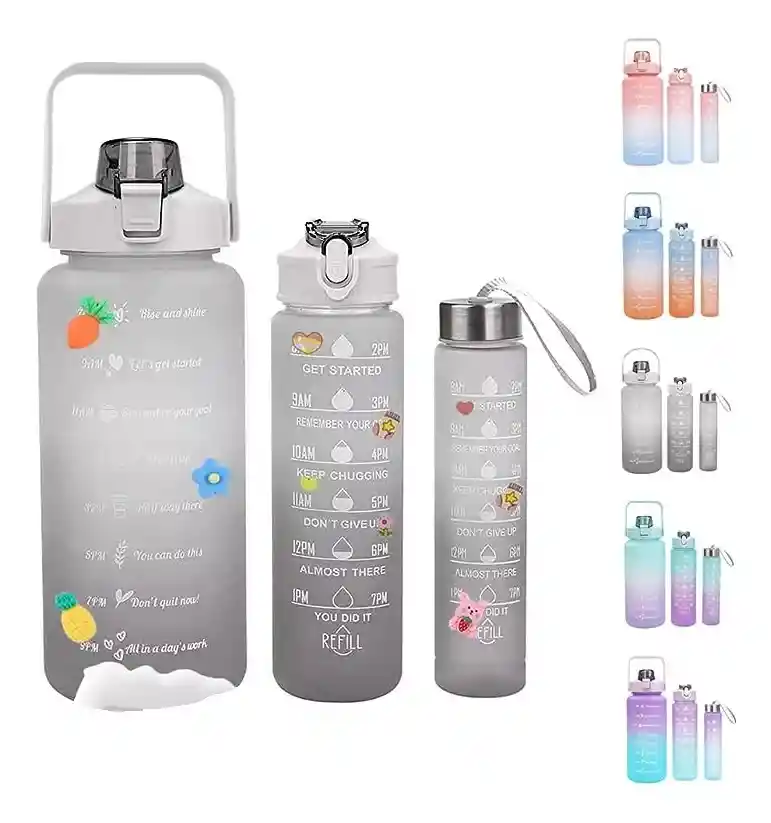 Transforma Tu Rutina Diaria Con Nuestro Set De Botilitos Motivacionales. Mantenerse Hidratado Nunca Fue Tan Inspirador. Este Set Es Ideal Para Quienes Buscan Motivación Y Bienestar En Su Día A Día. Atrévete A Cambiar Tu Vida: Cada Botilito Está Diseñado Con Frases Motivacionales Que Te Impulsarán A Seguir Adelante, Recordándote Que Cada Sorbo Es Un Paso Hacia Tus Metas. Beneficios Únicos: - Motivación Constante: Cada Botilito Tiene Una Frase Inspiradora Que Te Anima A Mantenerte Enfocado Y Positivo. - Diseños Atractivos: Tres Botilitos Con Estilos Únicos Que Se Adaptan A Tu Personalidad Y Estado De Ánimo. - Personalización Divertida: Incluye Stickers Y Un Pine Para Que Puedas Decorar Y Personalizar Tu Botilito, Haciéndolo Verdaderamente Tuyo. - Calidad Y Seguridad: Fabricados Con Materiales De Alta Calidad, Son Seguros Y Cuentan Con Tapas A Prueba De Fugas, Ideales Para Llevar A Cualquier Lugar. - Regalo Ideal: Sorprende A Tus Amigos Y Seres Queridos Con Un Regalo Que No Solo Es Útil, Sino Que También Inspira Y Motiva. No Dejes Pasar Esta Oportunidad: Haz De La Hidratación Un Hábito Motivador Y Lleva Contigo La Energía Positiva Que Necesitas Para Conquistar Tus Días. ¡adquiere Tu Set De Botilitos Motivacionales Hoy Mismo Y Comienza A Inspirarte!