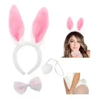 Lindo set de coneja x 3 piezas: Orejas, corbatín y cola, elaborados en suave felpa de color blanco y rosado