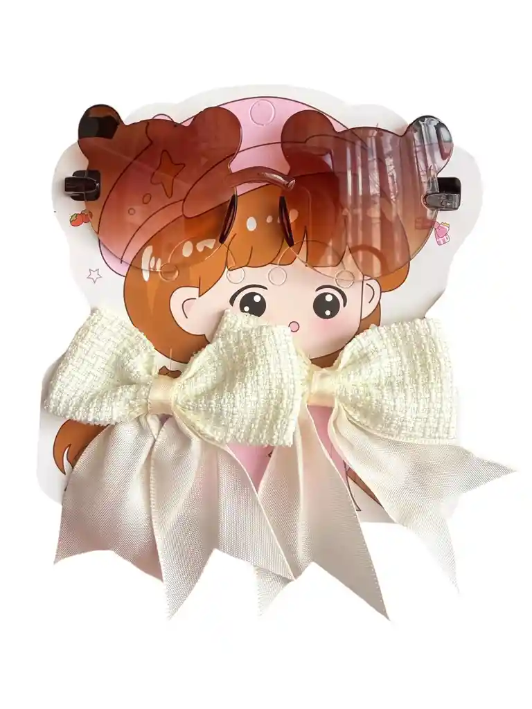 Set de gafas gatico y pinzas corbatin para niñas nude beige
