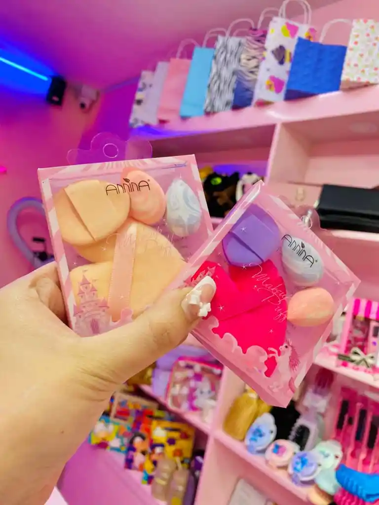 ¡Dale un toque de cuento de hadas a tu rutina de maquillaje! 🌈 Estas mini esponjas y pomitos de ANINA vienen en tonos pastel súper cute 💕 y con diseños inspirados en unicornios y castillos 🏰. Perfectas para aplicar base, corrector o polvos con acabado suave y uniforme ✨ 💫 Beneficios: Suaves y expandibles con agua 💧 Llegan a todos los rincones del rostro 👃🏻👀 Ideal para retoques rápidos y precisión total 💄 📦 Incluye: 3 mini esponjas + 1 puff 🎨 Tonos sujetos a disponibilidad de la tienda.