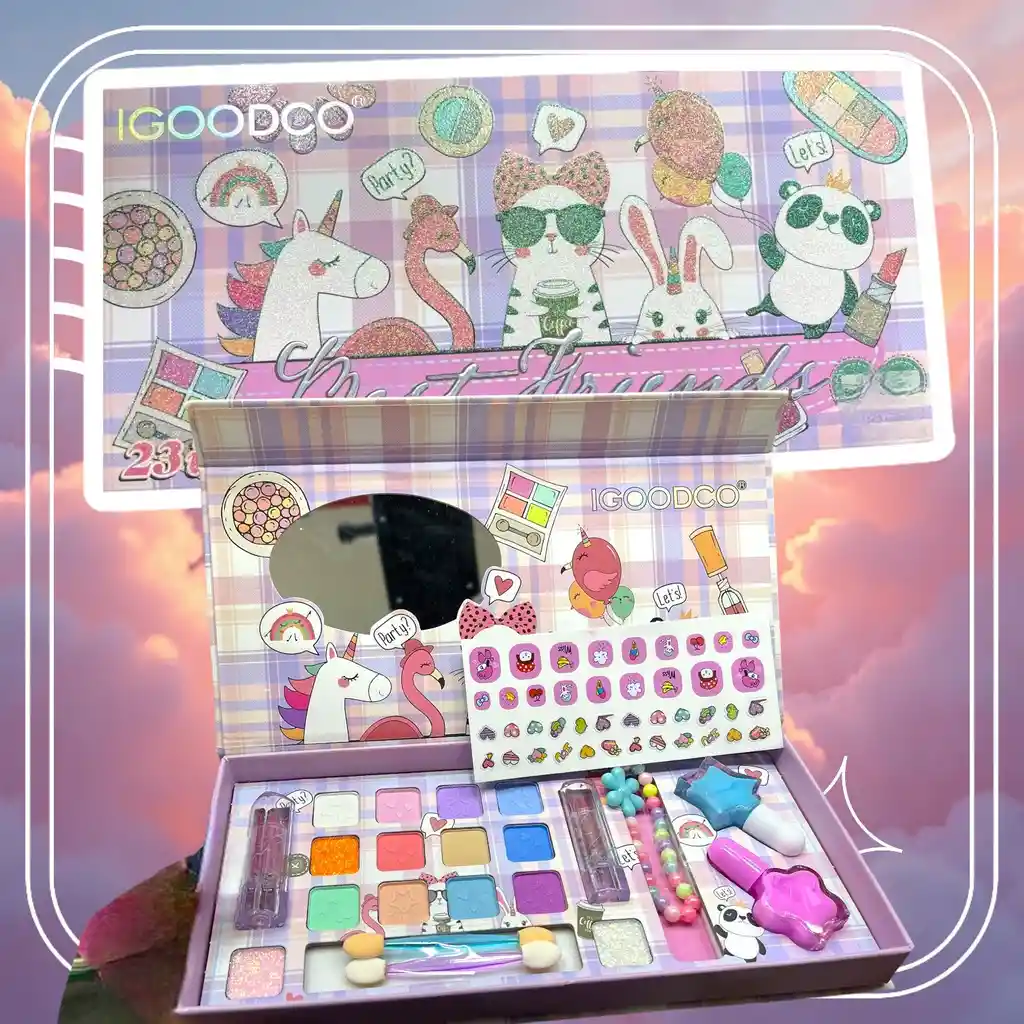 ✨Juego de Maquillaje pequeño para Niña: Este juego de maquillaje para niños incluye gran variedad de accesorios sombras ,esmaltes ,Stikers,labial,manilla,glider y aplicadores. Los tipos de cosméticos pueden satisfacer las necesidades de maquillaje de diferentes chicas y niñas creando una rol .
