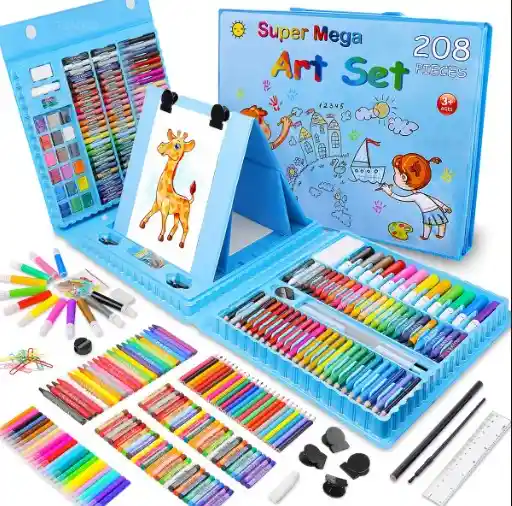 SET EXTRAGRANDE DE ARTE CRAYOLA + MARCADORES + LAPICES DE COLORES + ACUARELA + CABALLETE + ACCESORIOS PARA PINTURA DE 208 PIEZAS AZUL