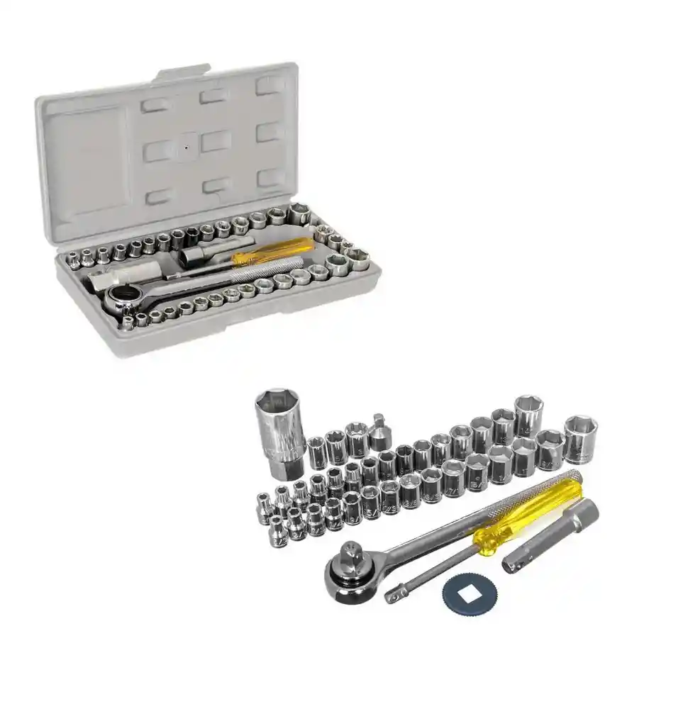 Este completo set de herramientas de 40 piezas es el aliado perfecto para reparaciones domésticas, trabajos de mecánica ligera y mantenimiento de motocicletas o bicicletas. Fabricado en acero de alta resistencia con acabado cromado para evitar la corrosión, el kit incluye un rachet reversible de alta precisión, un destornillador de fuerza y una amplia variedad de copas tanto en milímetros como en pulgadas, garantizando que siempre tengas la medida exacta para cada tornillo o tuerca. Todo el conjunto viene organizado en un maletín rígido compacto y portátil que facilita el transporte y evita la pérdida de piezas, convirtiéndolo en una solución práctica, duradera y profesional para solucionar cualquier imprevisto técnico de forma eficiente. FICHA TÉCNICA DEL PRODUCTO Cantidad de piezas: 40 piezas Material: Acero al carbono con acabado cromado Tipo de mando rachet: 1/4 y 3/8 de pulgada Rango de copas milimétricas: 4mm a 16mm Rango de copas en pulgadas: 5/32 a 9/16 de pulgada Incluye: 1 Rachet reversible, 1 Mango destornillador, 1 Extensión, 1 Disco de giro Accesorios adicionales: 1 Copa para bujías (21mm), 1 Adaptador Estuche: Maletín rígido de transporte en ABS Peso total: 1.2 kg aproximadamente Dimensiones del estuche: 24 cm x 12 cm x 4 cm Uso recomendado: Hogar, mecánica ligera, ensamble y bricolaje POLÍTICAS DE GARANTÍA El producto cuenta con una garantía de 30 días calendario por defectos de fabricación, fallas en el mecanismo del rachet o piezas faltantes al momento de la entrega bajo condiciones normales de uso. La garantía no cubre el desgaste natural por fricción, roturas por aplicar torque excesivo superior a la capacidad de la herramienta (uso industrial pesado), oxidación por exposición a la humedad prolongada o pérdida de piezas individuales por parte del usuario; para cualquier reclamación, el kit debe presentarse completo en su maletín original y en buen estado de limpieza.