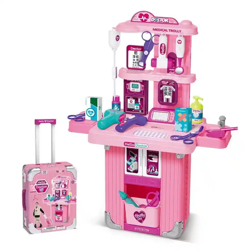 Somos TELEPRODUCTOS BOGOTA Productos 100% garantizados, años de experiencia en ventas online.! -Cuando realices la compra recibirás toda la información de contacto y datos para que puedas hacer seguimiento a tu producto.! ---------------------------------------------------------------------------------------------------------------------- La maleta didáctica Doctora 2 en 1 es el juguete ideal para que las niñas aprendan jugando a ser pequeños médicos. Su diseño práctico permite usarla como maleta portátil o transformarla en una estación médica con todos los accesorios necesarios. Características principales: Diseño 2 en 1: Se transforma fácilmente de maleta con ruedas a una completa estación médica de juego. Incluye variados accesorios: Estetoscopio, termómetro, jeringa, tijeras, frascos de medicina, rayos X, monitor y más. Fácil de transportar: Su formato tipo maleta con ruedas y asa extensible permite llevarlo a todas partes como un carrito de viaje. Material seguro y duradero: Hecho de plástico resistente, no tóxico y con bordes redondeados. Ideal para tus niñas de 3 años en adelante. Beneficios del juego: --Estimula la creatividad y la imaginación. --Promueve el juego de roles y la empatía. --Mejora la coordinación --Perfecto para regalar: Ideal para cumpleaños, Navidad o cualquier ocasión especial. ¡Horas de diversión aseguradas mientras aprenden jugando!