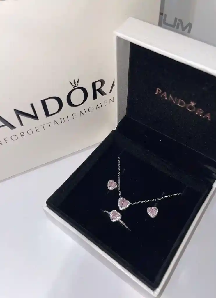 Set pandora en plata 925 , incluye anillo , collar aretes Incluye estuche de lujo Pandora ( cofre de empaque , bolsa pandora de lujo , bolsa pandora terciopelo , certificado pandora, pañuelo limpiar joyas)