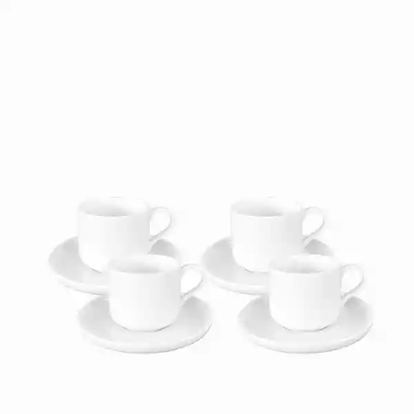 Set Contiene 8 Unidades. Taza 4 Und + Plato 4 Und. En Porcelana Blanca Con Capacidad Para 220 mL de la Colección Kira. Ideal Para Cualquier Calidad de Café. Hacen de la Hora Del Café el Brunch el té de la Tarde el Postre o Después de la Cena en Una Experiencia Especial.