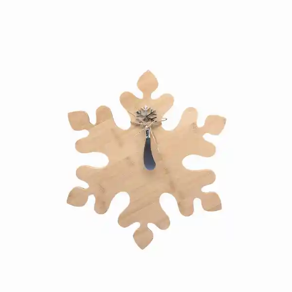 Set Contiene 2 Unidades. Set de Tabla y Cuchillo Para Untar Snowflake Ideal Para Servir Quesos Mantequillas y Dips en Tus Celebraciones. Fabricado en Bambú un Material Sostenible y Duradero Este Conjunto Combina Funcionalidad Con un Elegante Diseño Navideño.