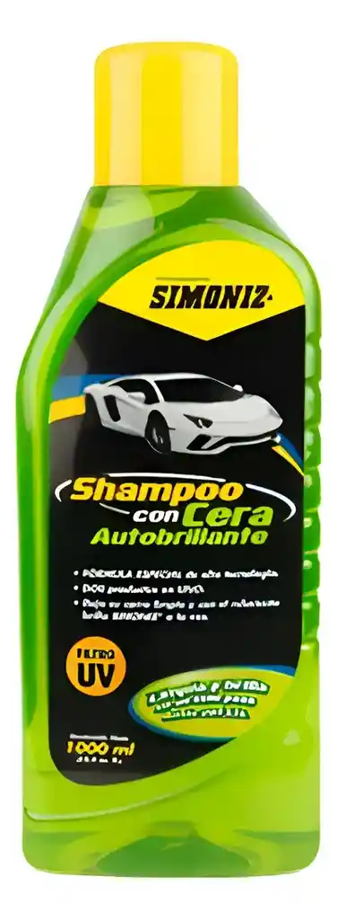 Shampoo Cera Autobrillante Simoniz 1 Litro Limpieza Lavado Automóviles Con un solo paso y sin esfuerzo adicional, mantiene tu vehículo limpio, protegido y con un brillo duradero que realza su apariencia. DESCRIPCIÓN Este shampoo con cera autobrillante de Simoniz es la solución perfecta para quienes desean mantener su automóvil limpio, protegido y con un brillo excepcional sin esfuerzo adicional. Su fórmula concentrada remueve la suciedad, barro y residuos adheridos, mientras proporciona una capa protectora con cera que deja la pintura del vehículo reluciente. En un solo paso, puedes lavar, encerar y darle a tu auto una apariencia impecable, ideal para mantener la pintura en perfectas condiciones. ¿Por qué comprarlo? Este shampoo es fácil de usar, rinde hasta 265 litros y protege contra los rayos UV, ayudando a preservar la pintura en óptimas condiciones. Con solo 30 ml diluidos en agua, puedes obtener un lavado profundo y una capa protectora sin necesidad de pulir manualmente. Además, su pH neutro asegura que no dañe la pintura ni los componentes de tu vehículo, siendo un aliado para un mantenimiento rápido, práctico y efectivo. CARACTERÍSTICAS -Shampoo con cera autobrillante -Fórmula concentrada -Remueve suciedad y barro -Protege y da brillo -Filtro UV -PH neutro -Rinde hasta 265 litros -Diluible en agua (30 ml por cada 8 litros) -Fácil aplicación -Protege la pintura del vehículo -Ideal para mantener el brillo -Cantidad: 1 litro Medidas: Largo: 6cm Ancho: 8cm Alto: 29cm Peso: 1145g QUE INCLUYE LA COMPRA x1 Shampoo Auto