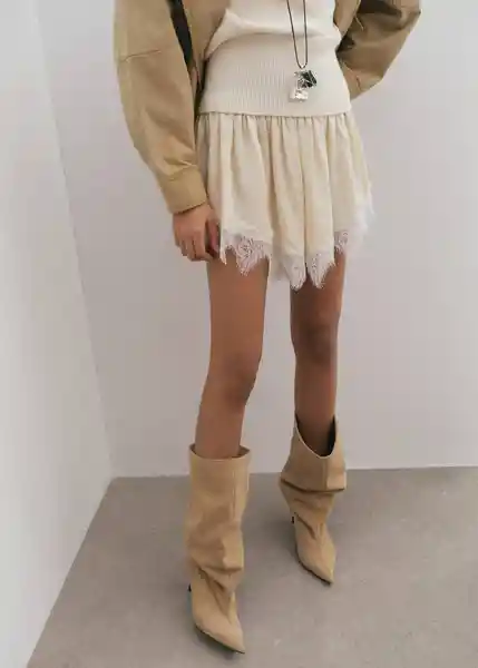 Cintura Ajustable Con Goma Detalle Encaje Diseño Corto Sin Cierre Tejido Mezcla Lyocell Tejido Satinado - 2705...Ver más
