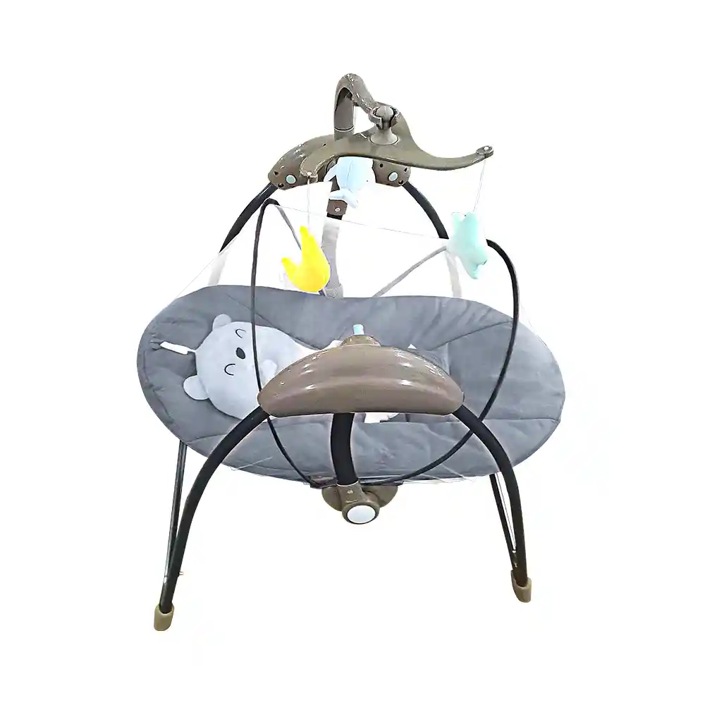 DESCRIPCIÓN La Silla mecedora para bebé tipo columpio es justo lo que necesitas para que tu bebé pase una experiencia agradable, fabricada con materiales resistentes y con una tela de lino amigable con el medio ambiente y transpirable le resultará bastante cómoda a su bebé, súper segura ya que cuenta con un un cinturón de seguridad de 5 puntos, también ofrece 5 niveles de frecuencia de agitación imitando la agitación del cuerpo humano, haciendo que el bebé se sienta más cómodo, función de reproducción de música Bluetooth, y resiste hasta 20 Kg. La mejor opción para tu bebé. CONTENIDO 1 Silla mecedora 1 Control remoto 1 Adaptador de CA/CC BENEFICIOS Máxima seguridad para tu bebé Gran cómodidad Fácil de guardar. Mantiene entretenido a tu bebé CARACTERÍSTICAS TÉCNICAS Cinturón de seguridad de 5 puntos Plegable Puerto USB Conexión Bluetooth Control remoto con alcance de 3 a 5 M Resiste hasta 20 Kg. MATERIALES Hierro Plástico Tela de lino