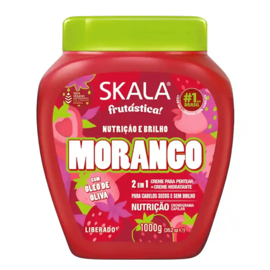 SKALA MORANGO/FRESA 1K La Skala Frutástica Crema de Tratamiento 2 en 1 Fresa 1Kg contiene en su fórmula extracto de fresa, con aceite de oliva, extracto de amaranto, canela china, cálamo y mirra, principios activos que en conjunto mantienen la longitud saludable del cabello, devolviéndole el brillo, reparando las cutículas, prolonga la sedosidad y peinabilidad del cabello. Una experiencia sensorial única para dejar tus rizos radiantes y listos para lucirse. Libre de parabenos, vaselina, siliconas y aceite mineral, ha sido testado dermatológicamente y tiene 72 horas de ultra definición. Además, está recomendado para cabellos rizados y encrespados, desnutridos y con falta de definición. Beneficios: - Prolonga el peinado; - Promueve el brillo y la suavidad; - Experiencia sensorial única; - Dermatológicamente testado.