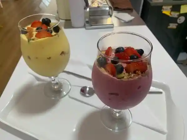 🥭🍓 Smoothie Frutos Rojos & Mango , Mezcla de pulpa de fruta con bebida láctea o vegetal. Cremoso, frío y naturalmente delicioso. Perfecto para un boost saludable en cualquier momento del día.