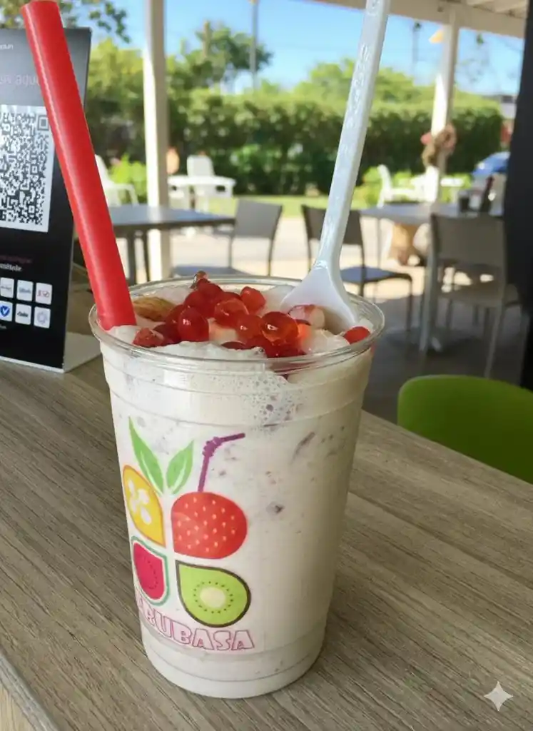 FRESAS PICADAS CON TODAS LAS LECHES CONDENSADA CREMA DE LECHE LECHE ENTERA Y LECHE EN POLVO HELADO DE VAINILLA BOLITAS EXPLOSIVAS DE FRESA Y SALSA DE FRESA