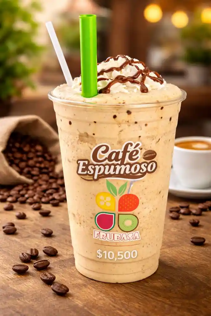 CAFE ESPUMOSO EN VASO DE 16 ONZAS CON CREMA CHANTILLY Y SALSA DE CHOCOLATE DELICIOSO
