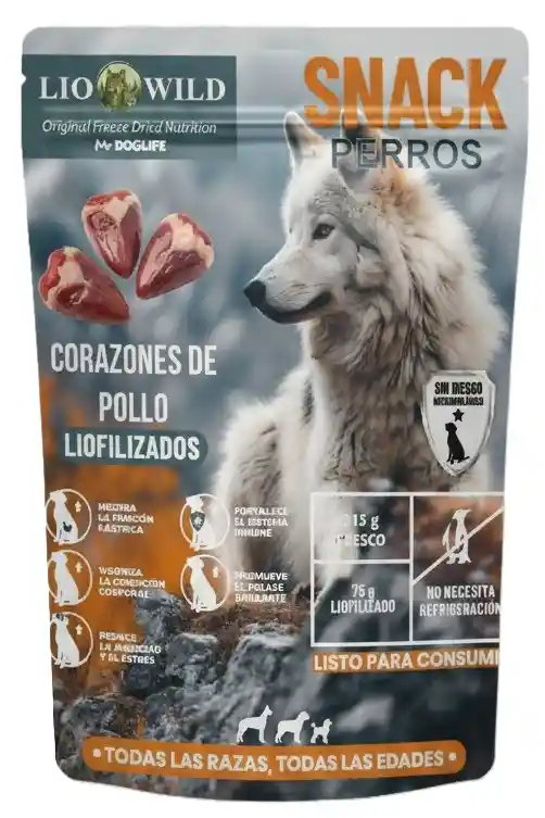 Snack liofilizado de corazones de pollo para perros DOGLIFE: Energía Natural para tu Mascota DOGLIFE: Snack Liofilizado de corazones de Pollo Para Perros Para Una Vida Saludable Snack liofilizado de corazones de pollo para perros DOGLIFE: la opción más saludable para tu perro. Mejora la digestión, fortalece el sistema inmunológico y proporciona un pelaje brillante. ¡Ideal para todas las razas y edades! DOGLIFE: Snack liofilizado de patas de pollo para perros para una Vida Saludable ¿Buscas una forma deliciosa y saludable de recompensar a tu perro? Los Snack liofilizado de corazones de pollo para perros DOGLIFE son la opción perfecta. Elaborados con ingredientes naturales y sometidos a un proceso de liofilización, estos snacks ofrecen una gran cantidad de beneficios para la salud de tu mascota.