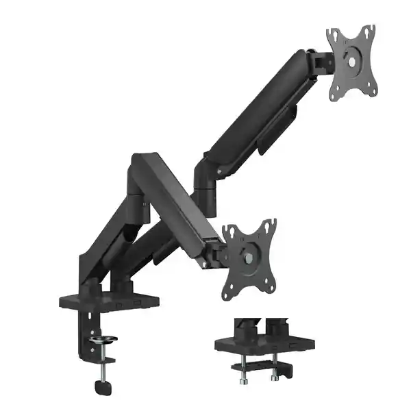 Trabaja más cómodo, mantén tu escritorio más ordenado y mejora tu postura con el brazo para 2 monitores de LinkOn. - Soporte para 2 monitores: Te permite mantener dos monitores de 17 hasta 32 en altura, con capacidad de movimiento para acomodar perfectamente tu monitor según tus necesidades, en posición vertical o horizontal y alinearlos perfectamente. - Apto para monitor curvo. - Capacidad de peso de pantalla de hasta 9kg por monitor. - Tope de Rotación Integrado de 180°: evita que el brazo para monitor se balancee contra las pantallas o las paredes - Diseño de Placa VESA Desmontable: permite una instalación fácil - Mecanismo de Tensión de Resorte Incorporado: para ajustes de peso perfectos - Gestión de cables integrada: proporciona un aspecto limpio a la configuración del monitor y permite un ajuste de altura más fácil evitando que los cables se tiren, se separen o se enreden durante las transiciones. - Dos métodos de instalación: puedes instalarla con su garra tipo C colocándola en la orilla de la mesa o haciendo un hoyo en cualquier ubicación. - Más limpio y ordenado: te permite optimizar el espacio en la mesa, pudiendo mantener todo el orden con mayor facilidad. - Clip para cable: Enruta los cables para reducir el desorden y lograr una apariencia limpia y un lugar más organizado. ----------------------------------------------------------------------- FICHA TÉCNICA - Material: Aluminio, Acero y plástico. - Color: Negro Mate - Cantidad de pantallas: 2 - Apto para monitores curvos - Con placa VESA de liberación rápida - Articulación: inclinación de +90° a -90°, giro de 90° y rotación de 180° - Orientación de la visualización: vertical u horizontal. - Tamaño del monitor: 17 a 32 pulgadas. - Extensión completa del brazo: 41,5 cm - Estándar VESA: 75 x 75 mm y 100 x 100 mm. - Capacidad de peso pantalla: 1 a 9 kg - Opciones de montaje: abrazadera en C, montaje de ojales. - Tamaño del escritorio: Abrazadera en C: 1 a 8,5 cm / Montaje de ojal: 1 a 8 cm - Dimensiones: 100x11,4x59,4 cm ----------------------------------------------------------------------- QUE VIENE EN LA CAJA - 1 Brazo para 2 monitores ATLAS DUAL - Piezas de armado - 1 Manual de instrucciones **Linkon® es distribuida en Colombia y Sudamérica exclusivamente por Builder Commerce SAS**