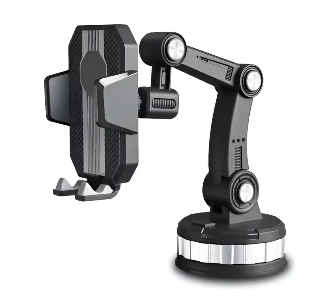 Soporte para celular con brazo articulado y base de succión de alta resistencia, diseñado para ofrecer máxima estabilidad y comodidad durante el uso del teléfono. Cuenta con un sistema de múltiples articulaciones que permite ajustar el ángulo, la altura y la orientación del dispositivo, garantizando una visualización óptima en todo momento. Su pinza con recubrimiento antideslizante sujeta el celular de forma firme y segura, evitando movimientos o caídas. Es ideal para usar en el carro, escritorio, mesa o superficies lisas, facilitando actividades como navegación GPS, videollamadas, grabación de contenido o consumo de multimedia. Su diseño robusto y moderno combina funcionalidad y durabilidad, siendo compatible con la mayoría de smartphones. Un accesorio práctico y versátil para quienes buscan comodidad, seguridad y manos libres en cualquier situación.