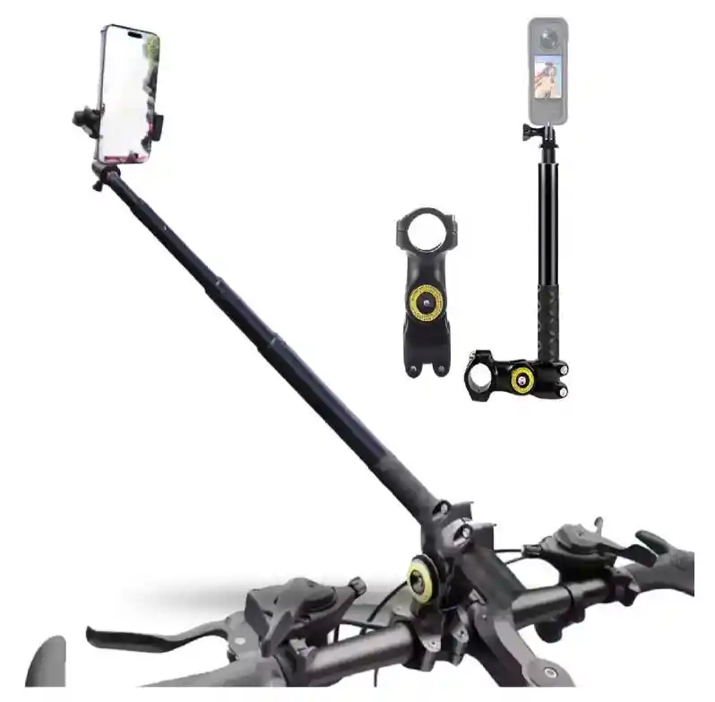 Soporte Telescópico 360° para Manillar – Grabaciones Profesionales sin Vibraciones Captura videos 360° estables, nítidos y profesionales mientras conduces. Este soporte telescópico está diseñado para motociclistas, ciclistas, motovloggers y creadores que necesitan calidad, resistencia y una fijación completamente segura. Compatible con Insta360, GoPro, cámaras deportivas y celulares (incluye adaptador). Su sistema de fijación de aleación de aluminio garantiza cero vibraciones incluso a alta velocidad. Ficha Técnica Profesional Compatibilidad Cámaras Insta360 (X2, X3, One RS, One R, etc.) GoPro y cámaras deportivas de tornillo universal 1/4 Celulares (incluye soporte ajustable) Material Aleación de aluminio de alta resistencia Componentes metálicos con pernos de bloqueo reforzado Medidas Altura telescópica: 28 cm a 118 cm Diámetro compatible del manillar: 29 mm a 32 mm Cabezal ajustable multiángulo con rotación precisa Características principales Sistema anti-vibración para grabaciones estables Extensión telescópica de alto alcance Ajuste de ángulo con indicador de precisión Instalación firme, segura y sin movimientos indeseados Empuñadura ergonómica para mejor agarre Compatible con motocicletas, bicicletas y scooters Beneficios Ideal para videos 360° y tomas en movimiento Perfecto para motovlog, ciclismo, viajes y contenido profesional Mantiene la cámara estable incluso en terrenos irregulares Permite capturar ángulos altos, amplios y de acción sin esfuerzo