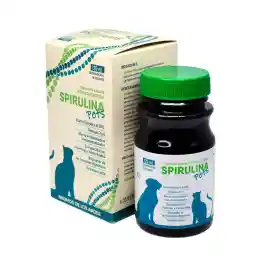 Spirulina Pets es un fitonutriente para perros y gatos a base de espirulina pura, concentrado de aminoácidos, vitaminas, minerales y ácidos grasos omega 3 y 6. Spirulina Pets por su contenido de ficocianinas , esta indicado como inmunomodulador y regulador de las funciones digestivas Beneficios: Efecto antioxidante e inmunomodulador Desintoxicante Refuerza el sistema inmune