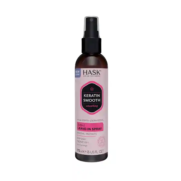Este spray acondicionador enriquecido con queratina y múltiples beneficios está diseñado para llenar el cabello con agentes humectantes y acondicionadores que protegen el cabello del calor y brindan una apariencia suave. Spray sin aclarado 5 en 1 Keratin Protein de Hask, un solo producto con 5 grandes beneficios. Este spray protector capilar suaviza y controla el encrespamiento del cabello, además proporciona protección térmica, hidrata y desenreda el cabello evitando así las roturas, protege tu cabello, aporta brillo y luminosidad.