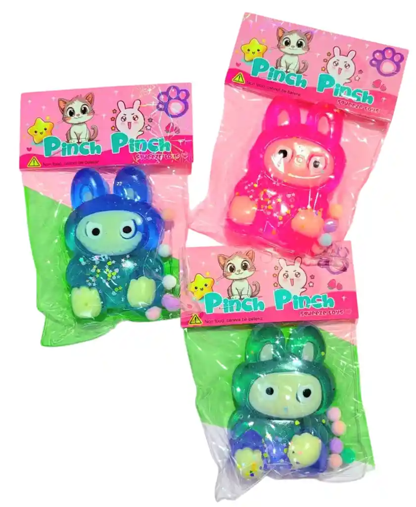 Squishy De Labubu en goma en distintos como Rosa, Verde y Azul, super suaves, Se envia de forma Aleatoria para decorar escritorios, para regalar o ideales para aliviar el estres. Aplastalo, Estiralo y disfruta su textura relajante.