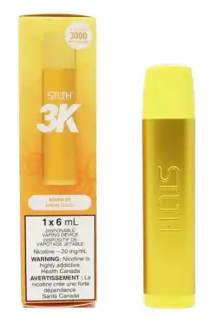 Con sabor a banana maduro dulce y frescura helada. Un vapeador funciona por medio de una bateria que calienta un líquido que se encuentra en un cartucho, por medio de una resistencia este genera vapor al ser inhalado por la boquilla o presionar un botón. STLTH 3K eres sistemas desechables los vapeadores tipos más básicos, creados para usarse hasta que se consume el líquido y luego desecharse. STLTH 3K contiene 6 ml de líquido y ofrece hasta 3000 caladas. El contenido de nicotina es de 20 mg por ml.