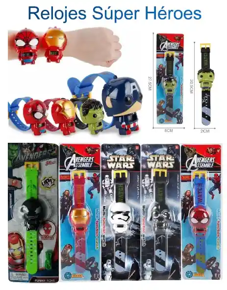 Lindos relojes con motivos de super héroes para niños. Disponibles de Capitán América, StarWars Negro, Star Wars Blanco, Tortuga Ninja, Venom, Peppa, No resistentes al agua.