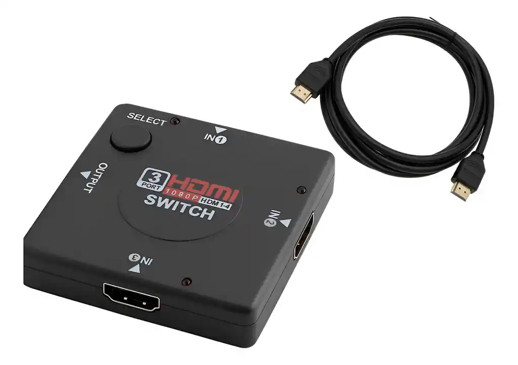 America Store te trae Switch Hdmi 3 Entrada 1 Salida + Cable Hdmi Características: Este tipo de HDMI compatible con este tipo de mini conmutador amplificador compatible con HDMI enruta video de alta definición (en resoluciones múltiple de hasta 1080p) Y audio digital desde cualquiera de las diversas fuentes para mostrar las unidades. Todas las entradas se adaptan a las conexiones de las fuentes de vídeo de alta definición simultáneamente, son compatibles para HD-DVD SKY-STB PS3 para Xbox 360, etc. La salida envía las señales de audio/vídeo de alta definición a una pantalla de alta definición. Este conmutador 1,4 compatible con HDMI tiene muchas características que le permiten funcionar de manera superior. Este interruptor compatible con HDMI de 3 puertos mantiene un video de alta resolución, hermoso para resoluciones nítidas de HDTV de hasta 1080p 2k 1440p gráficos y resoluciones de computadora de hasta 1920x1200 se logran fácilmente. Tiene una construcción de plástico con un botón seleccionado para un fácil funcionamiento. Especificaciones: Soporta 12 bits de color profundo completo 1080p.Z El interruptor es compatible con HDMI 1.4b. Alto rendimiento hasta 2,5 Gbps. Un puerto de salida y tres puertos. El paquete incluye: 1x adaptador divisor de interruptor compatible con HDMI de 3 puertos 1x Cable hdmi 1.50m
