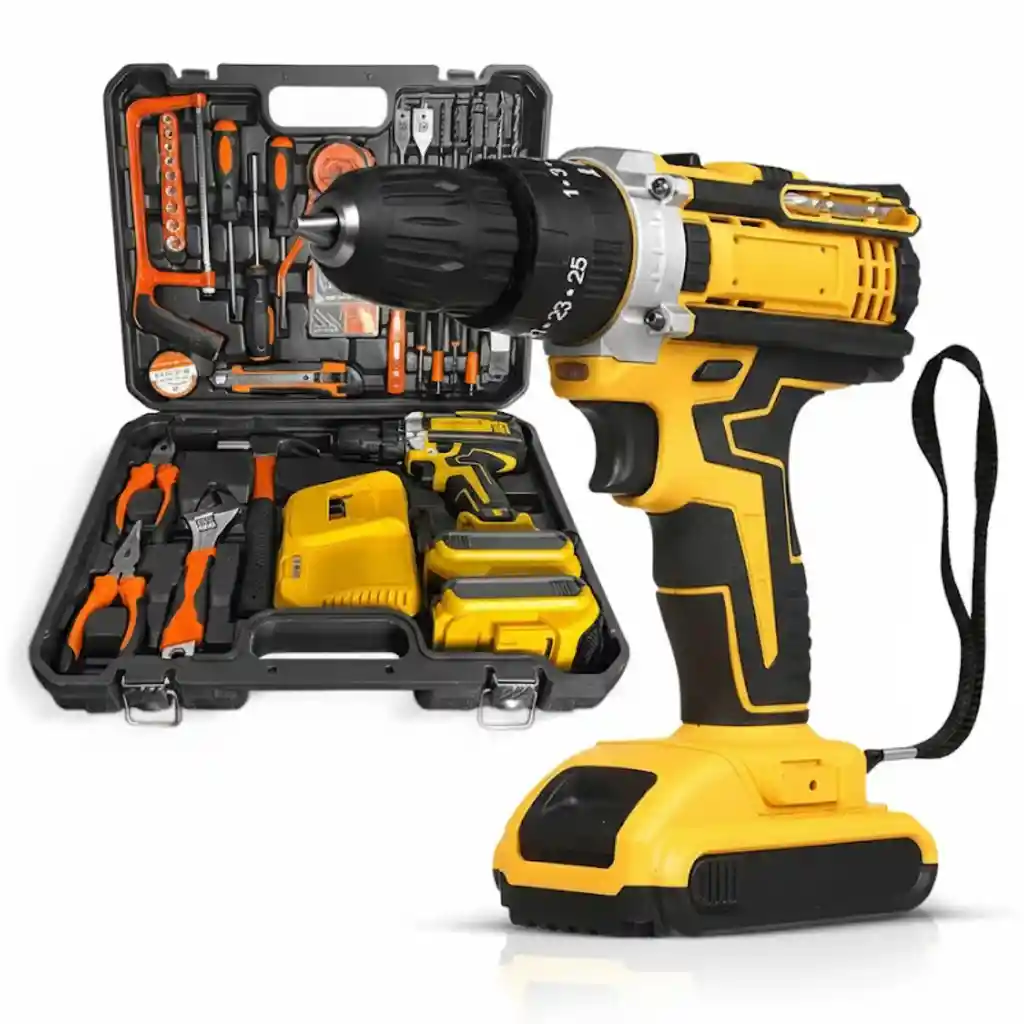 Taladro Inalámbrico 48V – Potencia Inalámbrica y Precisión para el Hogar Optimiza tus proyectos de bricolaje y reparaciones con el Taladro Inalámbrico de 48V. Este equipo está diseñado para ofrecer una portabilidad total, permitiéndote trabajar en cualquier lugar sin depender de enchufes gracias a su sistema de baterías recargables de alta autonomía. Con un diseño ergonómico y ligero, este taladro combina versatilidad y control, facilitando tareas de perforación y atornillado en una gran variedad de materiales como madera, plástico y metal con resultados profesionales. Características Principales Portabilidad Total: Funcionamiento inalámbrico y recargable para máxima libertad de movimiento. Versatilidad de Uso: Ideal para taladrar, atornillar y destornillar en diversos materiales. Cambio Rápido de Accesorios: Portabrocas sin llave que permite cambiar brocas con una sola mano en segundos. Control de Precisión: 25 configuraciones de embrague para ajustar el torque según la tarea. Iluminación LED Integrada: Facilita el trabajo en espacios oscuros o con poca visibilidad. Diseño Ergonómico: Mango de agarre suave que reduce la fatiga en trabajos prolongados. Autonomía Extendida: Incluye 2 baterías de 48V para garantizar flujo de trabajo continuo. Especificaciones Técnicas Funcionalidades: Atornilla, destornilla y perfora. Velocidad Variable: Desde 350 RPM hasta 1350 RPM. Mandril: Ajuste rápido sin llave de 0.8 mm a 10 mm. Configuración del Embrague: 1 - 25 niveles de torque. Baterías: 2 unidades de 48V (Ion de Litio). Maletín de Transporte: Estuche rígido para organización de herramientas. Dimensiones Aproximadas Dimensiones del Estuche: Aprox. 30 cm x 26 cm x 9 cm. Peso Total del Kit: 2.0 – 2.5 kg aprox. Funciones Destacadas Ideal para el Hogar: Herramienta indispensable para cualquier reparación doméstica o montaje de muebles. Kit Completo de Accesorios: Incluye 45 herramientas adicionales para cubrir múltiples necesidades. Ajuste de Velocidad: Gatillo sensible que permite controlar las revoluciones según la presión aplicada. Sistema Modular: Fácil intercambio de baterías para mantener el equipo siempre listo. Contenido del Paquete 1 x Taladro Inalámbrico 48V 45 x Accesorios y herramientas variadas 2 x Baterías recargables de 48V 1 x Cargador de pared 1 x Maletín de transporte rígido Garantía Este producto cuenta con 30 días de garantía por defectos de fabricación. Política de Retracto Aplica el derecho de retracto dentro de los 5 días hábiles posteriores a la entrega. El producto debe devolverse sin señales de uso, limpio, con todos sus accesorios y en su empaque original intacto. Notas Importantes Aclaración Técnica: Este modelo es un taladro atornillador convencional; no cuenta con función de percusión, por lo que no se recomienda para perforar concreto o mampostería pesada. Cuidado de Baterías: Se recomienda cargar completamente las baterías antes del primer uso para optimizar su vida útil. Evidencia: Para trámites de garantía o retracto, es indispensable adjuntar fotos o videos del estado del producto. La garantía no cubre daños por sobrecarga eléctrica, caídas, humedad o uso en materiales no aptos para las capacidades del equipo.