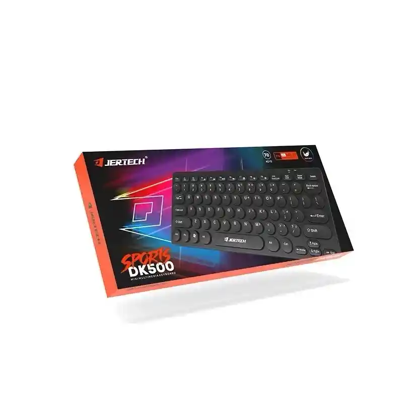 Marca y Modelo: JERTECH DK500. Conectividad: Conexión USB 2.0 alámbrica con una longitud de cable de 1.2 metros. Diseño: Diseño mini y ergonómico, pensado para reducir la fatiga durante un uso prolongado. Teclas silenciosas tipo óptico. Funciones multimedia integradas. Diseño a prueba de salpicaduras. Dimensiones y Peso: Longitud: 275 mm. Ancho: 120 mm. Altura: 10 mm. Peso aproximado: 320 gramos. Compatibilidad: Compatible con sistemas operativos Windows XP/Vista, Win 7, Win 8, MacOS, Linux y Smart TV con conexión USB. Durabilidad: Vida útil de las teclas superior a 10 millones de pulsaciones. Este teclado es adecuado tanto para el trabajo de oficina y el hogar como para videojuegos. Es un teclado con cable USB 2.0. Cuenta con 78 teclas, incluyendo funciones multimedia. Su diseño es delgado y compacto, ideal para portabilidad. Las teclas son delgadas, redondas y silenciosas. Es compatible con sistemas operativos Windows y Mac.
