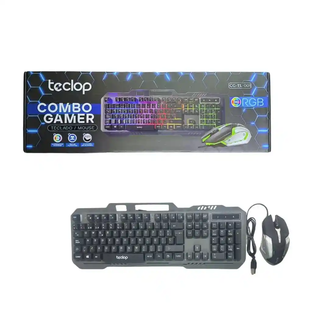 Incluye un teclado y un ratón alámbricos. Cuenta con iluminación LED RGB de fondo. Diseño resistente y ergonómico. Conexión USB. Referencia del producto: CG-TL-001. Tipo: Teclado de tamaño completo con cable. Retroiluminación: LED tipo arcoíris (RGB). Diseño: Robusto y con teclas de membrana. Mouse: Tipo de sensor: Óptico. Sensibilidad: Alta sensibilidad, con resolución de hasta 1.600 dpi. Diseño: Ergonómico. General: Conectividad: Alámbrico. Modelo: CG-TL-001.