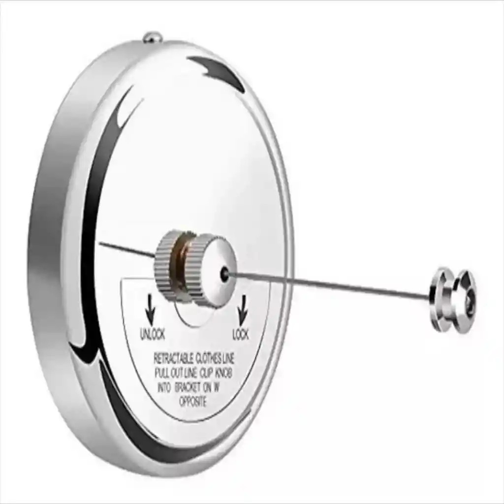 👕 Tendedero Retráctil de Acero Inoxidable Este tendedero retráctil es la solución perfecta para hogares con espacio limitado. Con un diseño circular moderno y un acabado brillante, se integra discretamente en baños, balcones o cuartos de lavado. Su sistema permite extender la cuerda solo cuando es necesario, manteniendo el área despejada y organizada el resto del tiempo.