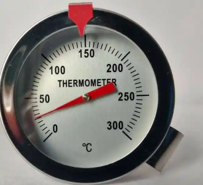 Termómetro análogo de punzón, cocina, alimentos, industrial, 15 cm de vástago, sonda de 150 mm para medir la temperatura interna, fácil de leer las temperaturas, pantalla de 52 mm, material acero inoxidable, dimensión cerca de 300X52 mm. Unidad de visualización de 10°C hasta 290°C. Tiempo de respuesta 5 segundos