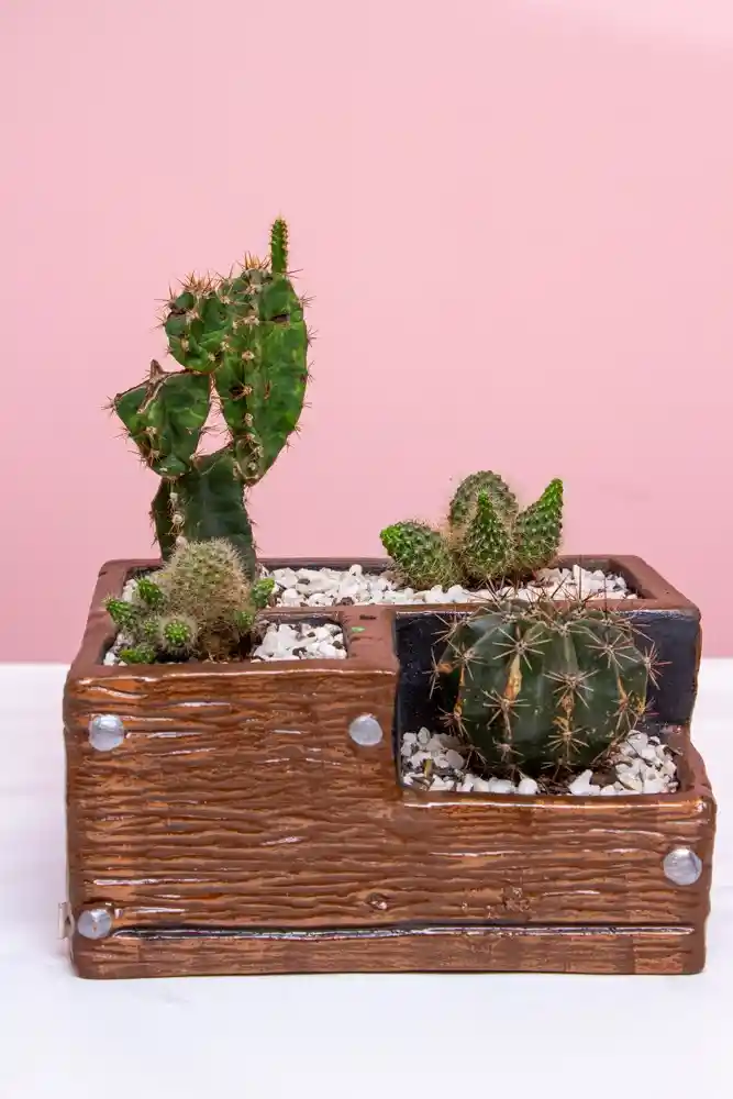 Imagina un cautivador terrario que alberga una mezcla exquisita de cactus, creando un paisaje miniatura que evoca la belleza del desierto y la diversidad de la vida vegetal. Cactus y suculentas seleccionadas de las mas alta calidad que haran resaltar este terrario y harán de él un jardín unico y llamativo. Este terrario de suculentas y cactus es más que una simple decoración es una ventana a un mundo natural fascinante y una expresión de la belleza y la armonía de la naturaleza. Es el regalo perfecto para aquellos que aprecian la vida vegetal y buscan traer un pedacito del desierto a su hogar u oficina.