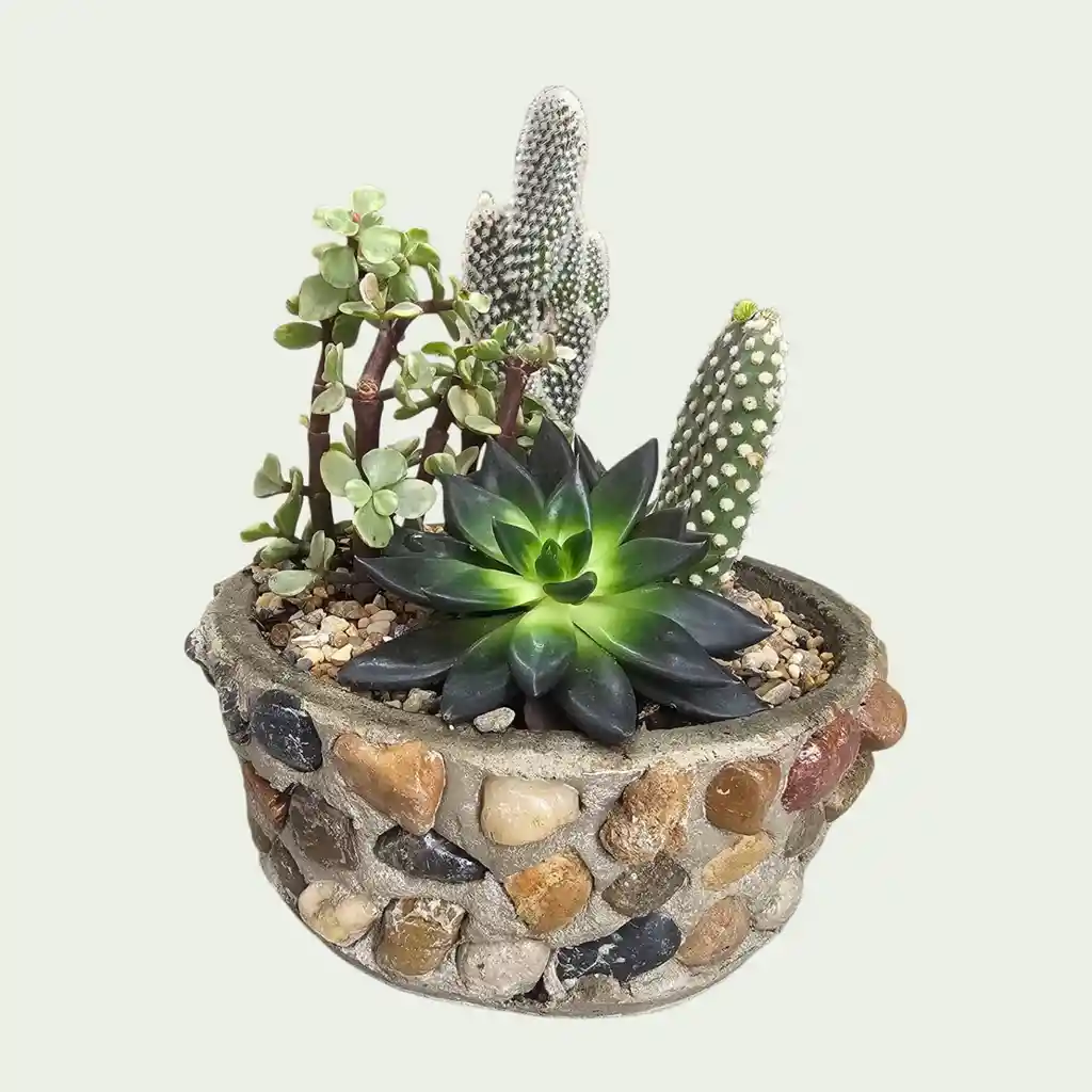 🌵✨ Dale un aire natural y elegante a tus espacios con un terrario de cactus y suculentas en matera de piedra 🪨. Cada diseño combina la belleza rústica de la piedra con la frescura de las suculentas y cactus, creando una pieza decorativa única y de bajo mantenimiento 🌿🤍. Ideal para mesas, escritorios o como un regalo original lleno de vida 🌼🏡.