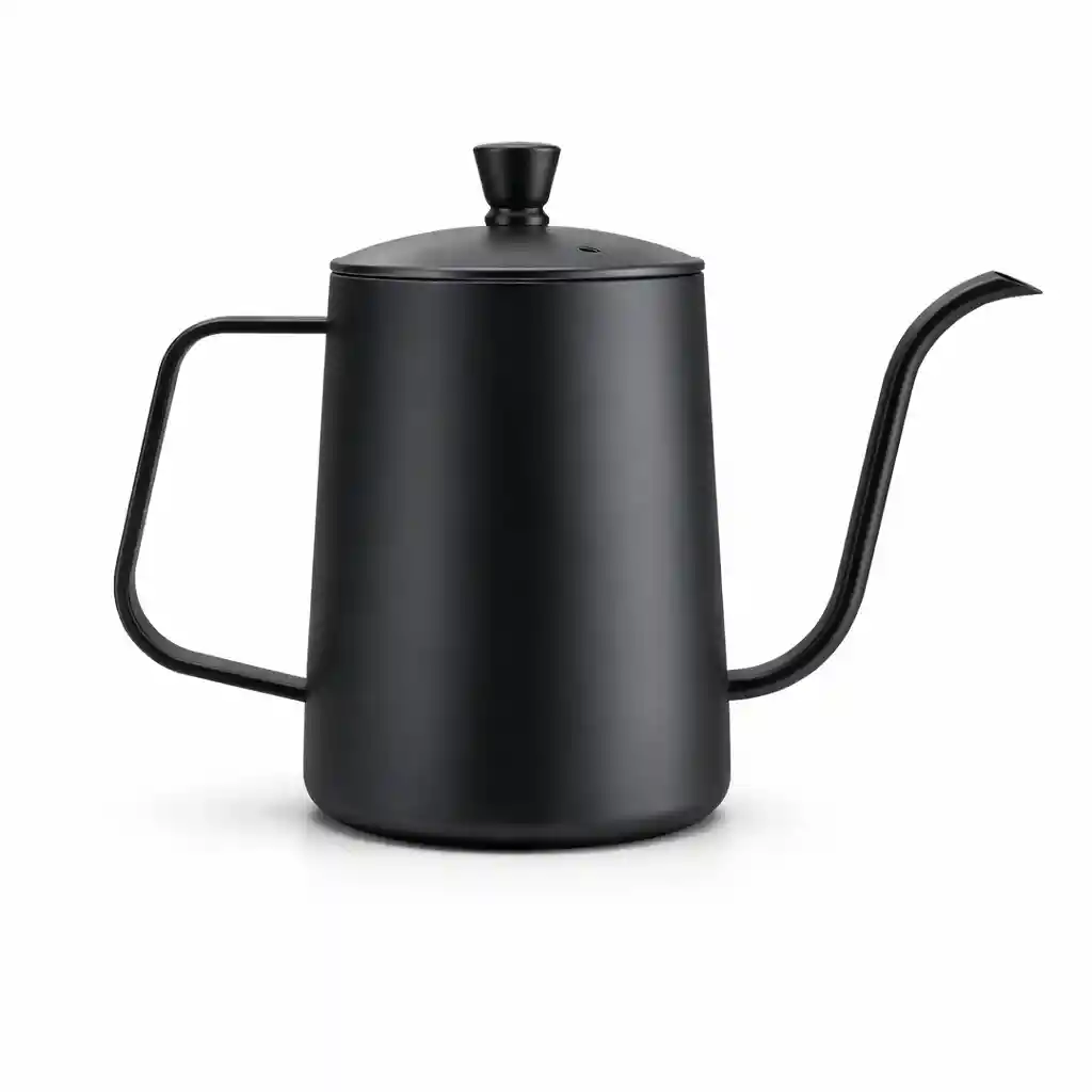 Prepara café tipo barista en casa con esta tetera cuello de ganso de 350 ml, ideal para métodos pour over como V60, Chemex o prensa. Su boquilla de precisión permite un vertido controlado y uniforme, ayudándote a extraer mejor el sabor y aroma en cada taza. Incluye tapa segura para evitar derrames y mantener el calor, además de un mango ergonómico que brinda un agarre cómodo y estable al servir. Su acabado negro mate le da un estilo moderno y elegante, perfecto para cualquier cocina o estación de café. Una opción práctica y compacta para quienes disfrutan del café bien hecho y quieren mayor control en cada preparación.
