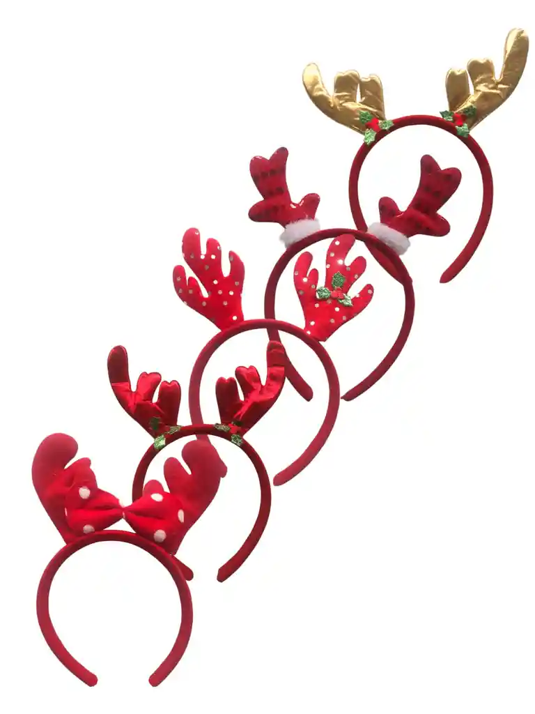 Diademas de Reno perfecto para darle un toque especial a tu NAVIDAD 5 unidades con tematica cuernos de reno color rojo navideñas aptas para adultos y niñas materia de tela y sintetico disponible para entrega inmediata Si deseas adicionar otros Articulos a tu compra puedes escribirnos, para poder ayudarte.