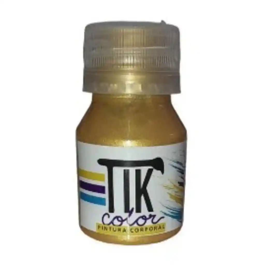 "TIK COLOR PINTURA ORO 30ML. Aplicar con pincel o esponja sobre la piel. retirar con paño húmedo y lavar con agua y jabón. Evite el contacto con los ojos y heridas, En caso de reacción adversa lave la zona con agua y suspenda su uso."