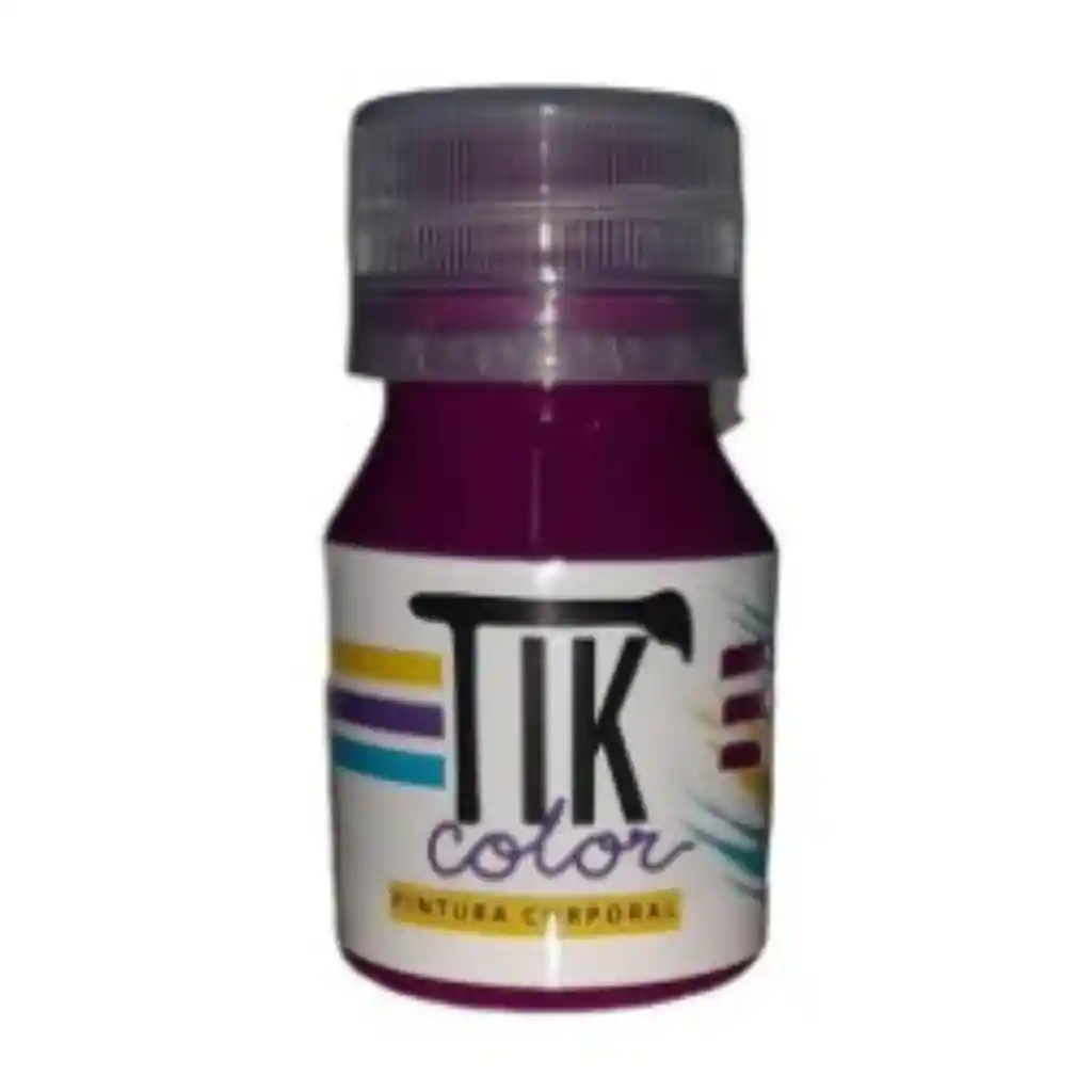 TIK COLOR PINTURA VIOLETA FLUORESCENTE 30ML. Aplicar con pincel o esponja sobre la piel. retirar con paño húmedo y lavar con agua y jabón. Evite el contacto con los ojos y heridas, En caso de reacción adversa lave la zona con agua y suspenda su uso.