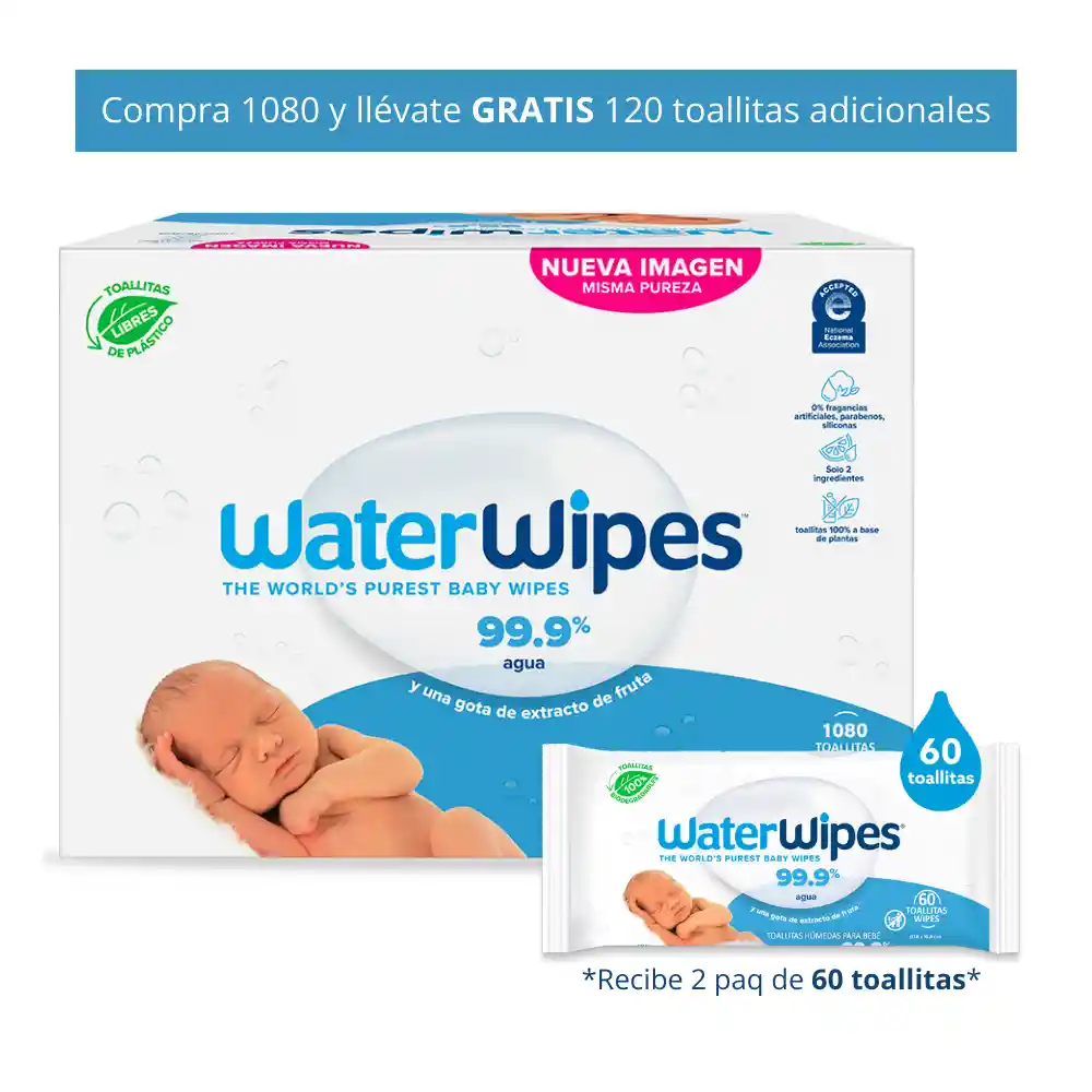 • Las toallitas más puras del mundo!. • Toallitas húmedas elaboradas con fibras de origen vegetal, libres de plásticos. Son gentiles con el medio ambiente, pero al mismo tiempo resistentes. • Las toallitas WaterWipes están hechas con un 99,9 % de agua y un 0,1 % de extracto de semillas de pomelo/toronja. Usamos agua irlandesa purificada, filtrada y decalcificada en todas las toallitas. • Hipoalergénicas, libre de sulfatos, parabenos, alcohol y fragancias. • Toallitas húmedas adecuadas para pieles sensibles, recién nacidos y bebés prematuros. Recomendadas por doulas para casos de dermatitis de pañal y alergias cutáneas. • Las toallitas también se utilizan para desmaquillarse, ofreciendo una forma práctica y rápida de eliminar el maquillaje y las impurezas de la piel. Son ideales para una limpieza profunda y suave, dejándola fresca y libre de residuos.