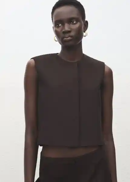 Cierre Oculto de Botones a Presión Cuello Redondo Diseño Crop Diseño Recto Forro Interior Sin Mangas Tejido Mezcla de Lana - 27081281_92.