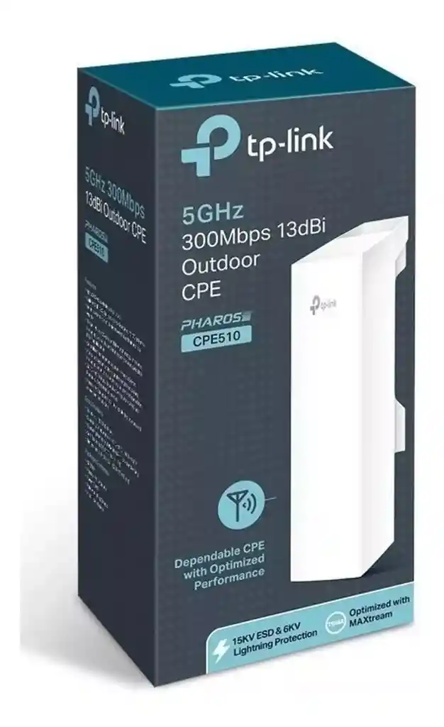 CPE de Exterior de 13dBi en 5GHz a 300Mbps CPE510 La tecnología TP-LINK Pharos MAXtream TDMA(Time-Division-Multiple-Access) mejora el rendimiento del producto, la capacidad y la latencia, ideal para aplicaciones PTMP Modos de operación: AP / Cliente / Bridge/ Repetidor / AP Router / AP Router Cliente (WISP) Antenas MIMO direccionales doblemente polarizadas de 13dBi y 2x2 Potencia de transmisión ajustable de 0 a 27 dBm / 500mw Optimizaciones a nivel de sistema para la transmisión inalámbrica 5 kilómetros de alcance La tecnología TP-LINK Pharos MAXtream TDMA (Time-División-Multiple-Access) mejora el producto en el rendimiento, la capacidad y tiempo de latencia, ideal para aplicaciones PTMP Sistema de Gestión Centralizada - Pharos Control Adaptador PoE Pasivo admite un máximo de 60 metros (200 pies) de implementación PoE y permite que el dispositivo se resetee remotamente CPE de Exterior de 13dBi en 5GHz a 300Mbps de TP-LINK, el CPE510 está destinado a soluciones rentables para aplicaciones de redes inalámbricas al aire libre. Con su aplicación de gestión centralizada, es ideal para conexiones punto a punto, punto a multipunto y aplicaciones exteriores de cobertura Wi-Fi. Rendimiento profesional, junto con un diseño fácil de usar, hace que el CPE510 sea la opción ideal tanto para usuarios domésticos como empresariales. Diseño Hardware para Empresa Con chipsets Qualcomm Atheros de nivel empresarial, antenas de alta ganancia y un material de gran calidad, caja especialmente diseñada, y la fuente de alimentación PoE, CPE510 está especialmente diseñado para uso en exteriores y puede funcionar sin problemas en casi cualquier clima, con temperaturas de funcionamiento desde -30 ¿ (- 22 ¿) a 70 ¿ (158 ¿). Sistema de Antenas Avanzado Antena de alta ganancia, polarización dual Reflexión metálica que asegura una mayor ganancia y una menor interferencia de ruido. Transmisión Inalámbrica de Datos 5 km Un diseño que rompe las barreras del rango tradicional de transmisión Wi-Fi, por lo que CPE510 es un producto ideal para aplicaciones al aire libre para redes inalámbricas. Tecnología TDMA TP-LINK MAXtream A medida que aumenta la escala de red, la competencia y las colisiones wireless entre los CPEs y las estaciones base será tan grande que el rendimiento real de la red se redicirá, dando como resultado un grave impacto en la experiencia del usuario final. Para mitigar estos efectos, el CPE510 utiliza tecnología TDMA MAXtream. El CPE510 también viene equipado con un software de gestión centralizada que ayuda a los usuarios a gestionar fácilmente todos los dispositivos de su red desde un solo ordenador – Pharos Control. Funciones como detección de dispositivos, monitorización de estado, actualización de firmware y mantenimiento de la red pueden realizarse utilizando Pharos Control. CARACTERÍSTICAS DE HARDWARE Procesador CPU Qualcomm Atheros Enterprise AR9350B 560MHz, MIPS 74Kc Memoria RAM DDR2 64MB, Flash 8MB Interfaz 1 Puerto Ethernet Blindado 10/100Mbps (LAN0, PoE pasivo de entrada) 1 Puerto Ethernet Blindado 10/100Mbps (LAN1, PoE pasivo Passthrough) 1 Terminal de Toma de Tierra 1 Botón de Reset Fuente de Alimentación Adaptador PoE Pasivo vía LAN0 (+4,5pins; -7,8pins) Rango de Voltaje: 16-27VDC Consumo de Potencia Máximo de 13 W Nota: Cuando está configurado usando el adaptador de POE pasivo, la energía obtenida de la fuente de alimentación variará dependiendo de la longitud del cable de conexión. Dimensiones 224 x 79 x 60 mm Tipo de Antena Antena Direccional Doblemente Polarizada 2x2 de 13dBi Ancho de Haz: 45° (Plano-H) / 30° (Plano-E) Nota: Para más detalles, por favor consulte la hoja de datos Protección Protección ESD de 15KV Protección contra rayos de 6000V Carcasa Material plástico estabilizado ASA para exterior Certificación contra agua IPX5 CARACTERÍSTICAS INALÁMBRICAS Estándares Inalámbricos IEEE 802.11a/n (con Pharos MAXtream desactivado) Protocolo Propietario Modo TDMA (con Pharos MAXtream activado) Velocidad Inalámbrica Hasta 300Mbps (40MHz, Dinámico) Hasta 144.4Mbps (20MHz, Dinámico) Hasta 72.2Mbps (10MHz, Dinámico) Hasta 36.1Mbps (5MHz, Dinámico) Frecuencia 5.15~5.85GHz Nota: La frecuencia de trabajo disponible puede variar dependiendo de las limitaciones de los países o regiones donde se encuentre en uso el dispositivo. Sensibilidad de Recepción • 802.11a: 54M: -75dBm, 48M: -76dBm, 36M: -83dBm, 6-24M: -95dBm • 802.11n: MCS15: -73dBm, MCS14: -74dBm, MCS13: -76dBm, MCS12: -80dBm, MCS11: -83dBm, MCS10: -88dBm, MCS9: -90dBm, MCS8: -93dBm, MCS7: -73dBm, MCS6: -74dBm, MCS5: -76dBm, MCS4: -80dBm, MCS3: -83dBm, MCS2: -88dBm, MCS1: -90dBm, MCS0: -93dBm Potencia de Transmisión 27dBm/500mw (Potencia Ajustable hasta 1dBm) Nota: la potencia de transmisión máxima puede variar a través de diferentes canales en función de las limitaciones de los países o regiones en los que se utiliza el dispositivo. CARACTERÍSTICAS DE SOFTWARE Configuraciones Inalámbricas Tecnología TDMA MAXTream Pharos Modos 802.11a/n Ancho de Canal Seleccionable: 5/10/20/40MHz Selección de Canal Automático Control de Transmisión de Energía Selección de Frecuencia Dinámica (DFS) WDS Activado/Desactivado Seguridad: Encriptación WPA/WPA2, WPA-PSK/WPA2-PSK (AES/TKIP) y Encriptación WEP 64/128/152-bit SSID Broadcast Activado/Desactivado Multi-SSID con VLAN tagging (solo en modo AP) Ajustes de timeout en Distancia/ACK Filtrado Inalámbrico de Direcciones MAC Opciones Inalámbricas Avanzadas: Intervalo Beacon /RTS Threshold/Fragmentación Threshold/ Intervalo DTIM/ AP Isolation/Short GI/Wi-Fi Multimedia Gestión Detección y gestión remota a través mediante la aplicación Pharos Control Administración basada en Web http/https Registro del Sistema Agente SNMP(v2c) Ping Watch Dog DNS Dinámico Servidor SSH Herramientas Del Sistema Indicadores de calidad de señal inalámbrica: Intensidad de la señal / ruido / Transmit CCQ / CPU / Memoria Monitor