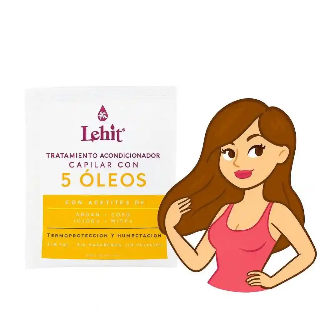 🌿 Descripción general El tratamiento combina cinco aceites naturales 🌸 que aportan suavidad, brillo ✨ y fuerza 💪 al cabello. Está formulado para todo tipo de cabello, especialmente aquellos maltratados, secos o expuestos al calor 🔥 de planchas y secadores. 💧 Aceites principales Contiene una mezcla de: 🌰 Argán: nutre profundamente y aporta brillo. 🥥 Coco: repara el daño y previene la resequedad. 🌿 Jojoba: regula la producción de grasa y mantiene la hidratación. 🌸 Macadamia: suaviza y mejora la elasticidad. 🌺 Mirra: fortalece y protege contra el quiebre. 🔥 Beneficios 🛡️ Termoprotección: protege del calor de herramientas térmicas. 💦 Hidratación intensa: restaura la humedad del cabello. 🌬️ Antifrizz: controla el encrespamiento. ✨ Brillo y suavidad: deja el cabello más sedoso. 🚫 Sin sal, parabenos ni sulfatos: ideal para cabello teñido o tratado.