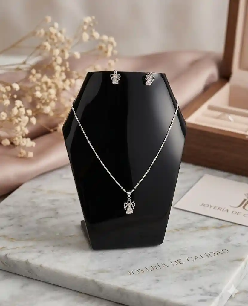 ✨ Trío Plata Ley 925 Ángel con Cuerpo Brillante + Estuche de Lujo ✨